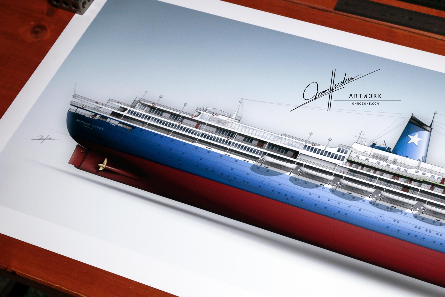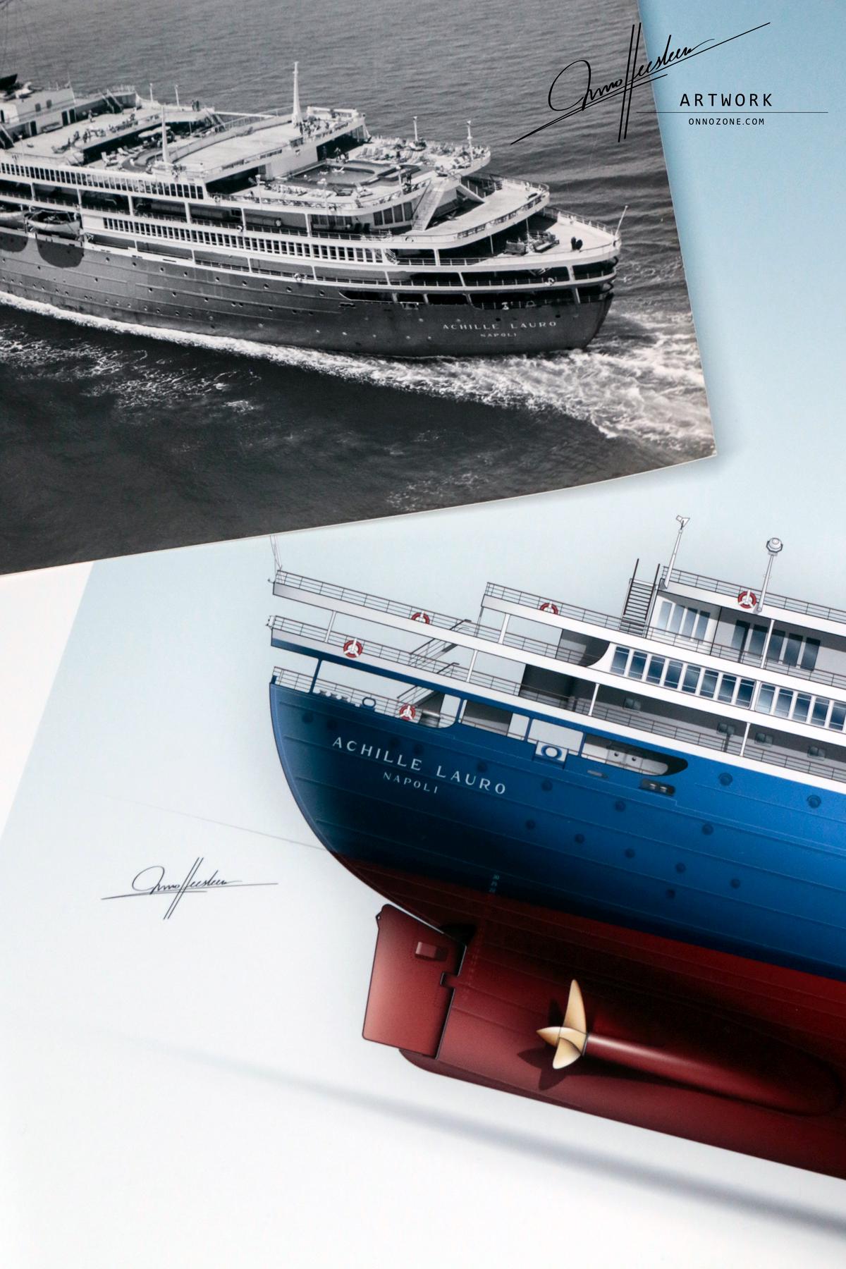 These resources ensure an accurate depiction of the MS Achille Lauro, providing a solid foundation for the artwork.