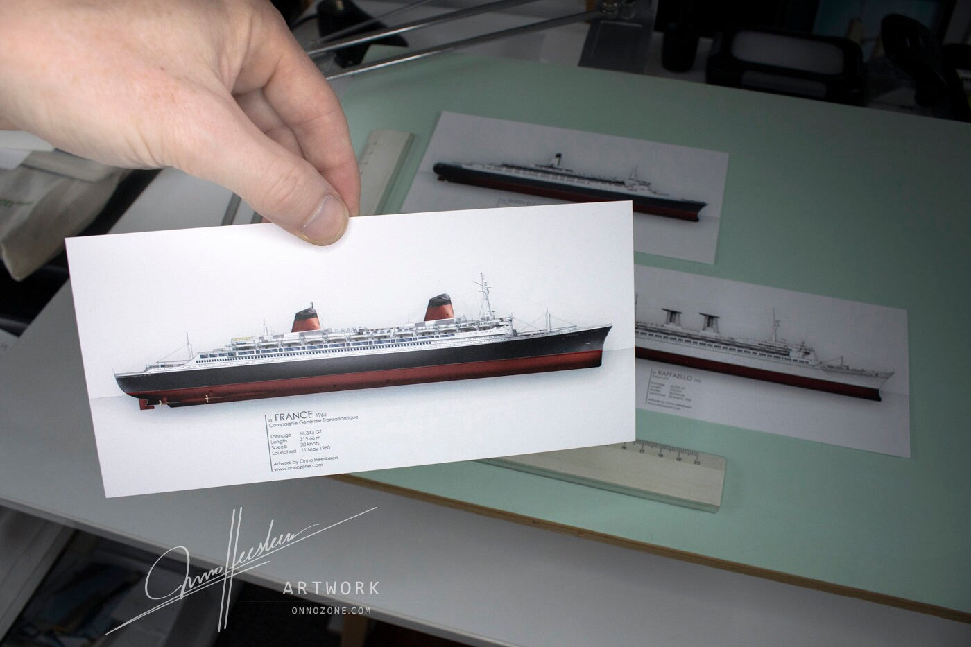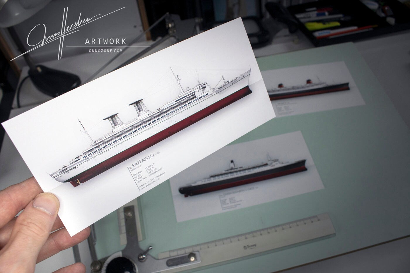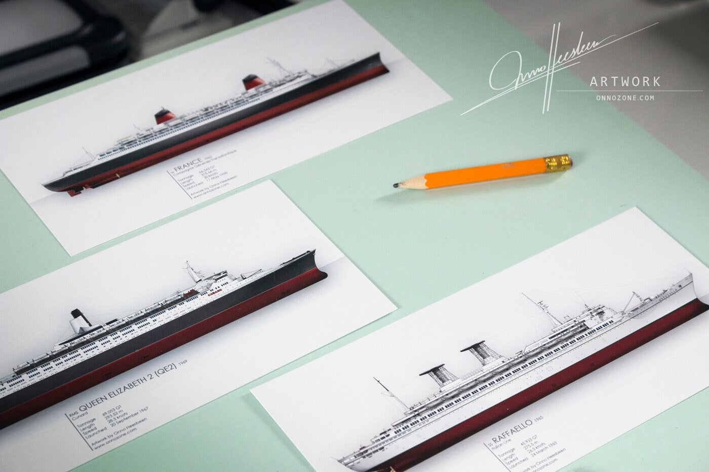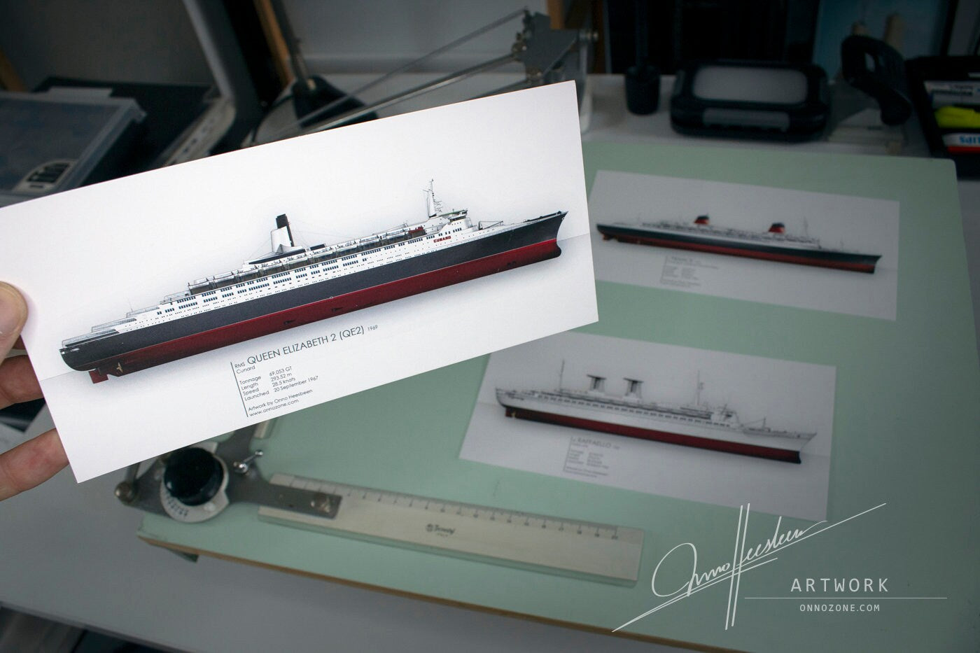 These resources ensure accurate depictions of the SS Raffaello, SS France, and RMS Queen Elizabeth 2, providing a solid foundation for the artwork.