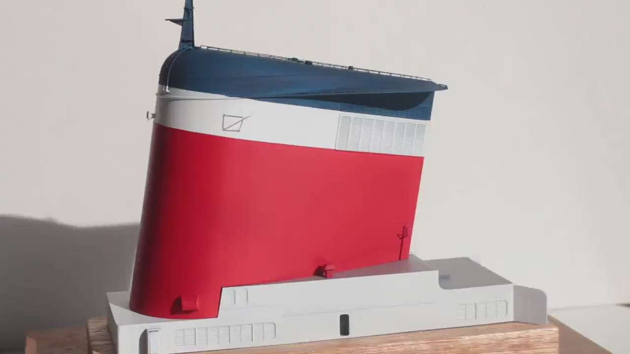 This is a meticulously crafted, shape-accurate scale model of the iconic 1952 United States forward funnel, reconstructed using original builder plans and reference photos from archives.
